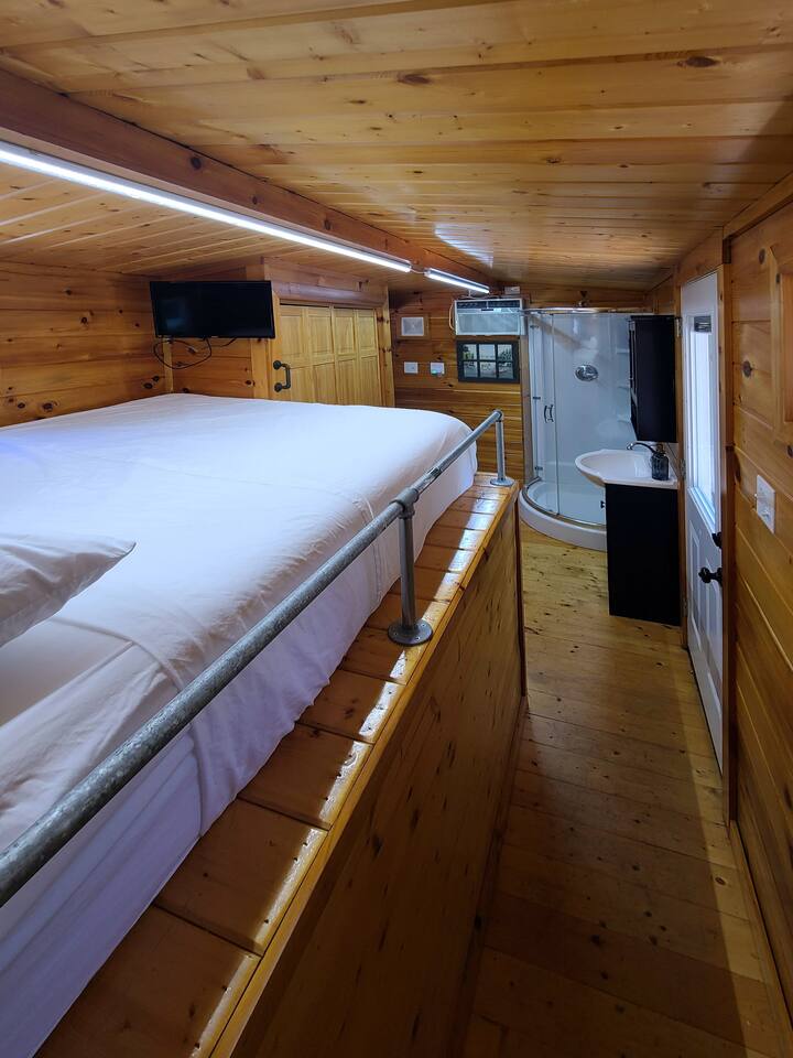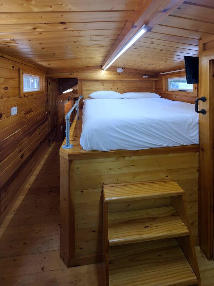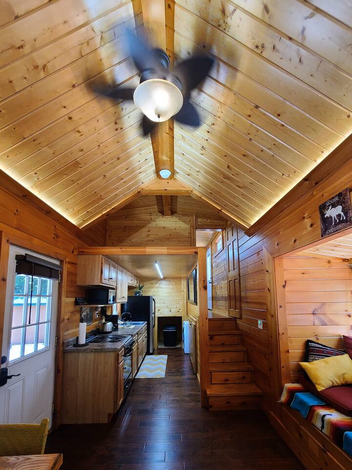 Must be able to climb a few steps to reach the bed in the tiny house.