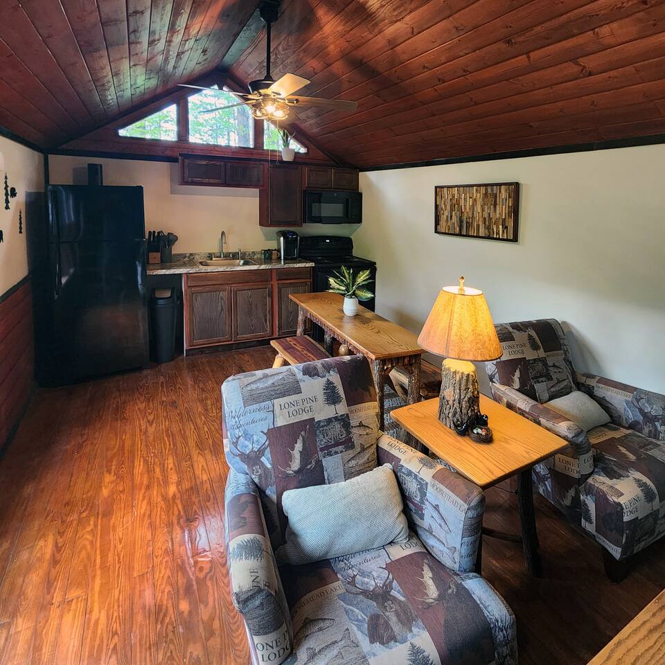 • Loft Sleeping Area: Accessible by ladder (300lb weight limit), features two twin mattresses with low ceilings—perfect for children or adults who enjoy cozy spaces • Self Check-in: Easy, contactless access for a seamless arrival • National Park Proximity: Guests consistently praise our location near Great Smoky Mountains National Park entrances • Wifi Performance: High-speed connection perfect for streaming, gaming, or remote work • Ideal For: Couples seeking romantic getaways or small families/groups up to 4 people