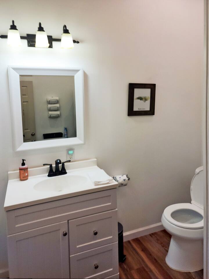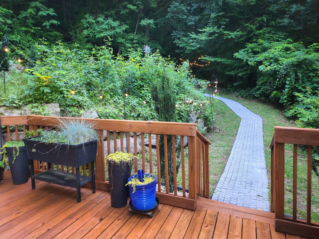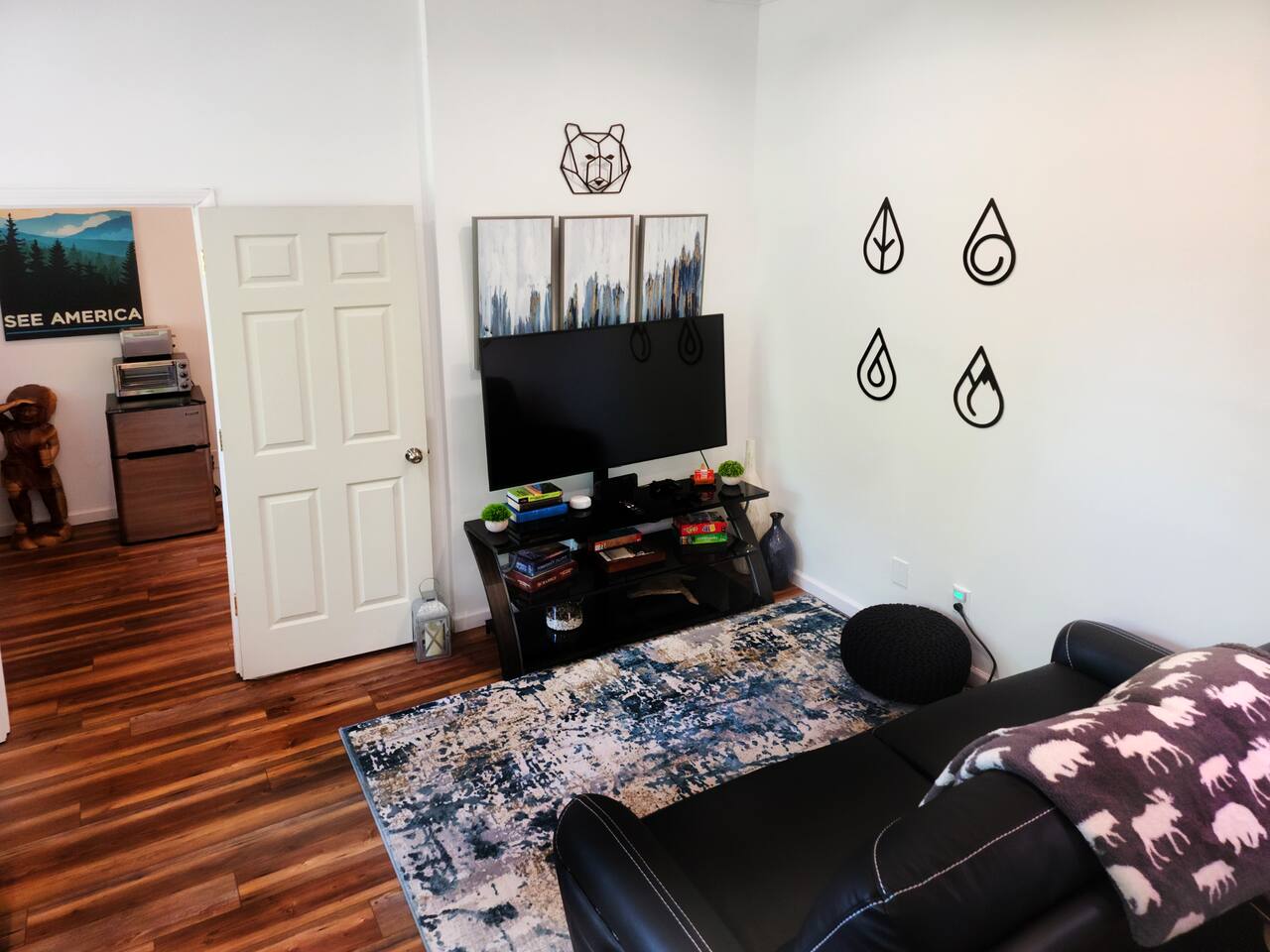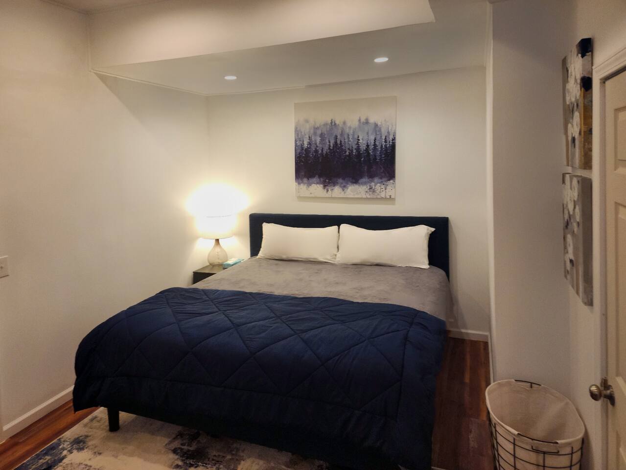 Enjoy the privacy of our full basement unit, featuring a kitchenette, bedroom, bathroom, living room and dining area, office space, plus a washer and dryer. Relax on your lower deck or explore the path leading to a peaceful hammock and outdoor bench/table area. We kindly ask that you refrain from accessing the bedroom and utility closets, as they contain house essentials and our seasonal decorations. We appreciate your understanding in keeping these areas undisturbed.