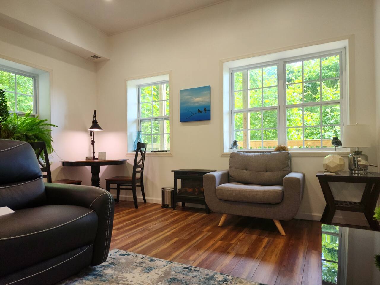 Welcome to Your Home Away from Home Nestled in Cullowhee, NC, our charming property offers a blend of comfort, style, and a chance to reconnect with nature, making it the perfect retreat for your getaway. Living Spaces: As you step inside, you'll be greeted by a spacious and well-lit living room, tastefully furnished to create a welcoming atmosphere. Whether you're unwinding after a day of exploration or gathering for a movie night, this space is designed for relaxation and enjoyment. Kitchen and Dining: Our modern kitchenette is equipped with essential appliances and utensils, ideal for preparing light meals and snacks. Adjacent to the kitchenette is a cozy dining area, perfect for enjoying your culinary creations or a morning cup of coffee. Bedroom and Comfort: Discover a tranquil haven in our serene bedroom, designed for ultimate relaxation. Nestled in peaceful surroundings, the room features a comfortable bed dressed in fine linens and is enveloped in a calming darkness conducive to a restful night's sleep. The soothing decor enhances the peaceful atmosphere, ensuring a deeply restorative experience. Bathroom Essentials: The bathroom is clean and contemporary, stocked with fresh towels and basic toiletries for your convenience. Additional Amenities: For those needing to catch up on work, our dedicated office area provides a quiet space. The in-unit washer and dryer add an extra layer of convenience for longer stays. Outdoor Bliss: Step outside onto your private deck to soak in the natural surroundings. A short stroll leads you to a tranquil area with a hammock and bench/table, perfect for outdoor relaxation. A Note on Privacy: While the property ensures complete privacy for our guests, we kindly remind you to respect the designated private areas, ensuring a harmonious stay for all.