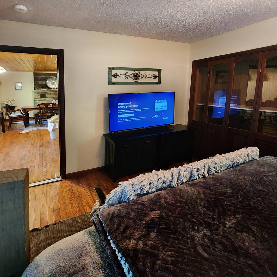 Step back in time with modern comforts in our historic Bryson City cottage. Originally built during the town's early days, this charming home blends vintage architecture with updated amenities perfect for today's travelers. Sip morning coffee on your private deck, then simply walk to explore everything this enchanting mountain town offers. Your evenings might find you gathered around the shared fire pit trading stories or walking to local restaurants and breweries for dinner. During the magical winter season, the Great Smoky Mountain Railway's famous Polar Express departs just minutes from your door—creating unforgettable holiday memories without the hassle of traffic or parking. Convenient Walkable Distances: • Downtown Bryson City shops & restaurants: 5-minute walk • Great Smoky Mountain Railway: 10-minute walk • Local breweries: 5-10 minute walk • Grocery and conveniences: 8-minute walk Short Drive Attractions: • Downtown Bryson City (1 minute) • Great Smoky Mountain Railway (2 minutes) • Great Smoky Mountains National Park (8 minutes) • Downtown Cherokee (17 minute) • Deep Creek Trailhead (9 minutes) • Nantahala Outdoor Center (17 minutes) • Harrah's Cherokee Casino Resort (17 minutes) • Mingo Falls (29 minutes) • Indian Creek Falls (14 minutes) • Oconaluftee Indian Village (19 minutes) • Sequoyah National Golf Club (13 minutes) Experience the perfect balance between walkable convenience and scenic mountain tranquility. Our cottage consistently receives praise for its ideal location—quiet enough for peaceful evenings yet close enough to leave your car parked throughout your stay.