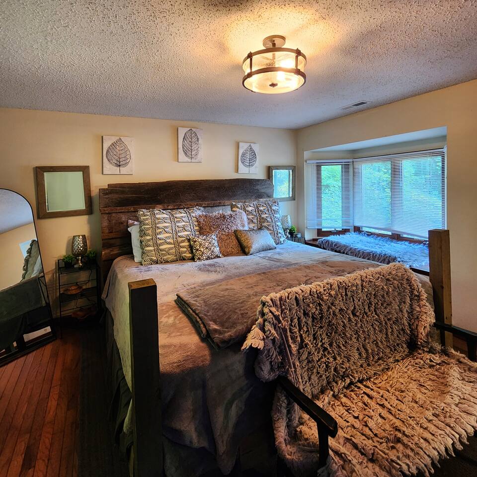 No need to search for parking: our historic Bryson City cottage puts the heart of town right at your doorstep! Wake to birdsong, then stroll just minutes to charming downtown cafés, shops, breweries and the iconic railway. Return to relax around the fire pit making s'mores and sharing stories. Inside, two king bedrooms welcome you after adventures in the nearby Smokies. Perfect for families and couples seeking both walkable convenience and authentic mountain charm.