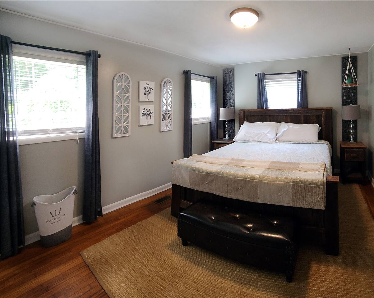 Give your family room to spread out in our 3-bedroom home with spacious yard—where kids can play while adults unwind. Just 10 minutes from Smoky Mountains National Park and 7 minutes from Bryson City's downtown & charming train depot. After adventure-filled days, gather around the fire pit for stories and s'mores. With two king beds, one queen, and all the comforts of home, you'll have the perfect family basecamp for creating mountain memories that last a lifetime.