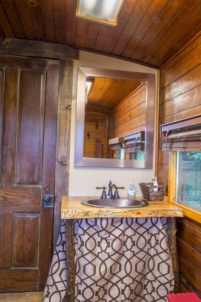 All aboard the authentic movie-famous caboose from "The Fugitive" now transformed into a tiny house! Perfect for families and train enthusiasts, this unique accommodation sleeps four in twin bunk beds and sits within walking distance to downtown Bryson City and the Polar Express. Enjoy climate-controlled comfort, a private deck, and hotel-style kitchenette. Create unforgettable memories in this piece of cinematic history while exploring all the Smokies have to offer!
